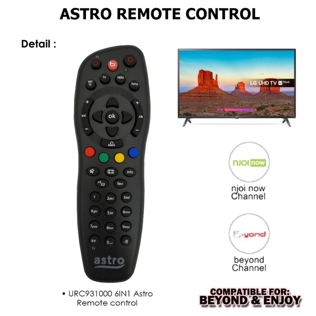 Universal Astro Remote Control For Satellite Decoder Beyond Njoi Pvr Original Quality Easy Setup Suitable For Tv Shopee Malaysia