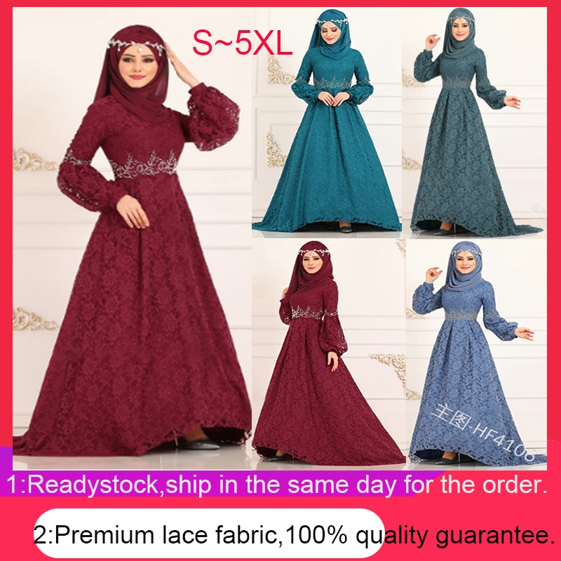 New Fashion Muslimah Plus Size Long Sleeve Laceymaxi Dinner Evening Dress Gown Shopee Singapore
