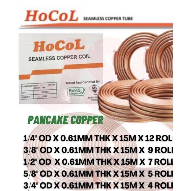 Copper Pipe Diameter 3分 3 8 9 52mm Copper Tube Thickness 0 61mm 0 71mm Acson Copper Coil For Air Cond With Sirim Per Coil Lazada