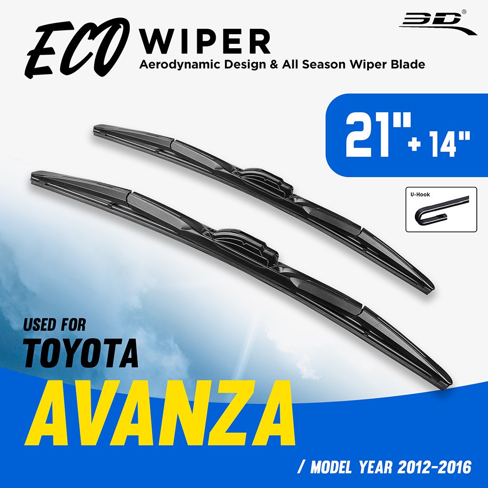 PERFORMANCE FIT FOR ANY TRIP. Toyota avanza wiper sold in Lelong comes from categories. TOYOTA AVANZA 2004-2017 Suitable for cars with U-Hook wiper arm Easy Installation Maximum Durability Silent and Clear Wipe Front Wiper Blades Beam Hybrid wiper blade are fast becoming the standard fit on new vehicles due to their exceptional performance in all weather conditions.