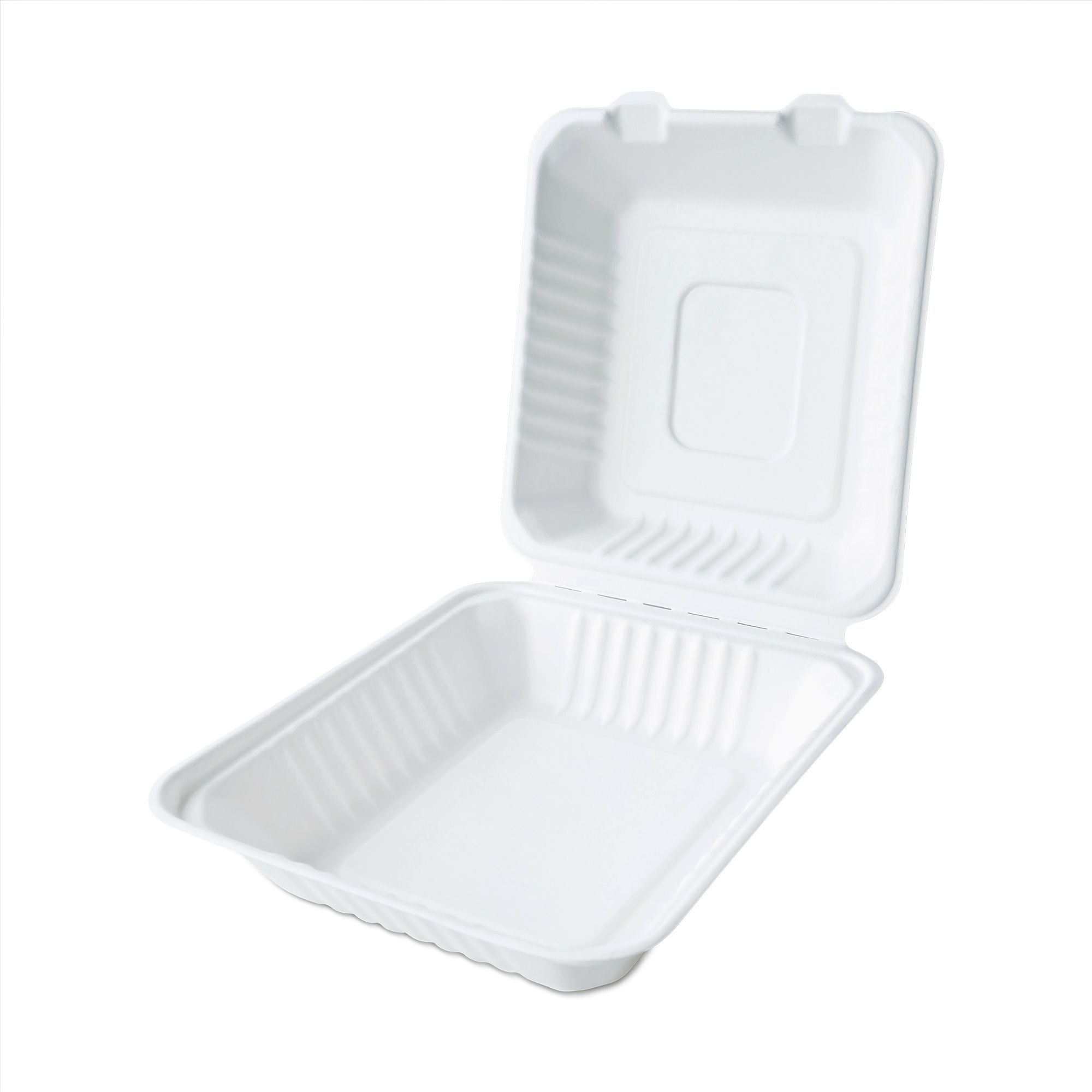 Bekalan Kotak Makanan Bagasse Clamshell Saiz Besar Iso Haccp Pembuatan Dalaman Tair Chu