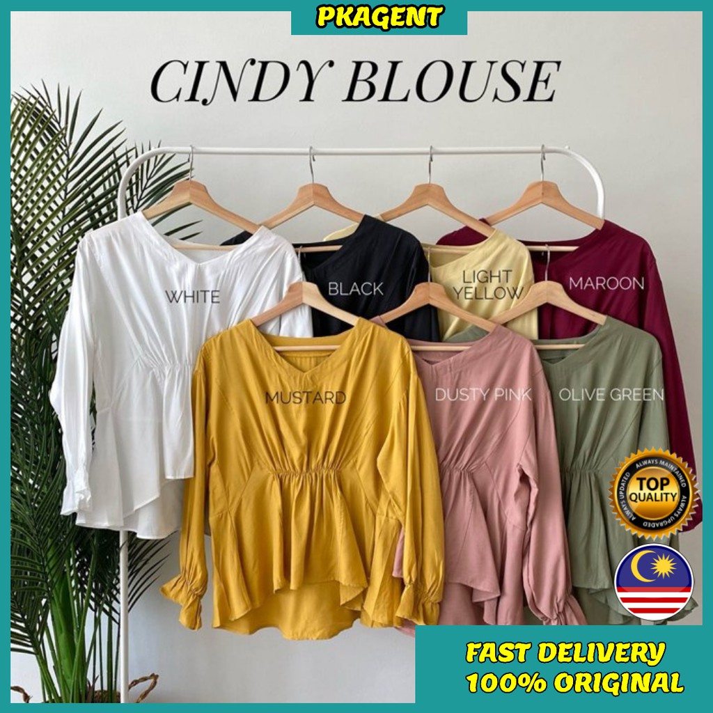 Buy Cindy Blouse Baju Blouse Wanita Lengan Panjang Tops Blouse Fashion Plain Casual Long Sleeves Baju Murah Cantik Seetracker Malaysia